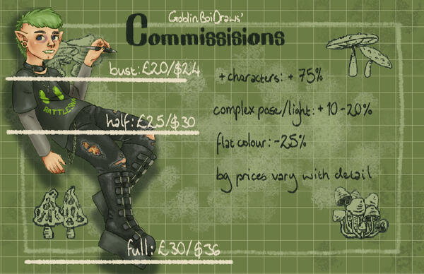 I'm a queer and neurodiverse artist. I do a variety of work, including character design, clothes modding, lino printing, and other design work. I'm very interested in tattooing, and sell tattoo designs too.Feel free to email me at [email protected] about commission work or any other enquiries.Please check out my stuff, and follow and share to help me grow <3